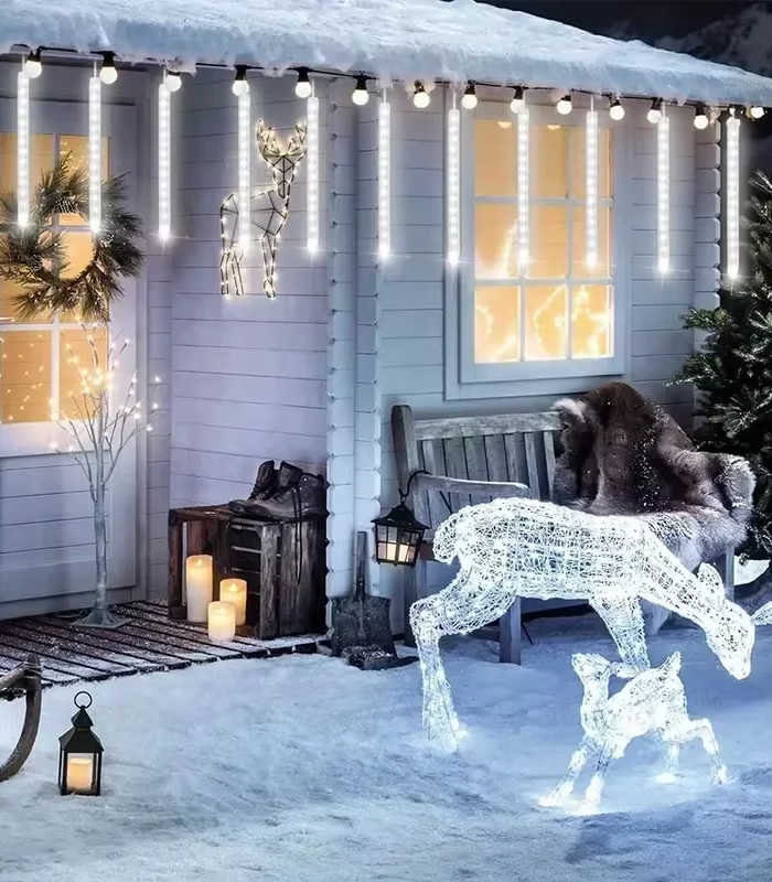 Venkovní LED světla mají 8 rampouchů, které se postupně rozsvěcují a zhasínají a imitují tak efekt padajících meteoritů nebo sněhu! Tento efekt vytváří velmi atmosférické osvětlení nejen venku, ale i uvnitř budovy. Každý rampouch je dlouhý 50 cm a na výběr jsou 4 barevné varianty.