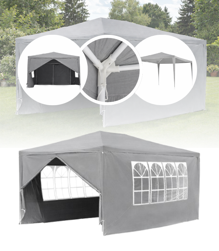 PAWILON OGRODOWY NAMIOT OGRODOWY 3X4 SZARY IMPREZOWY NAMIOT EVENTOWY DO OGRODU NA DZIAŁKĘ NA TARAS GRILL PRZYJĘCIA PIKNIK STABILNA KONSTRUKCJA STALOWY STELAŻ WODOODPORNY