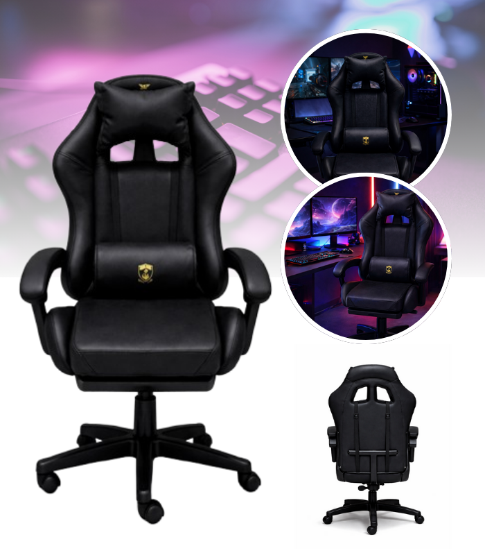 FOTEL GAMINGOWY CZARNY DLA GRACZA REGULOWANA WYSOKOŚĆ MEBLE GAMINGOWE FOTEL Z PODNÓŻKIEM ERGONOMICZNY MEBLE DO BIURA, POKOJU DZIECIĘCEGO PREZENT DLA GRACZA