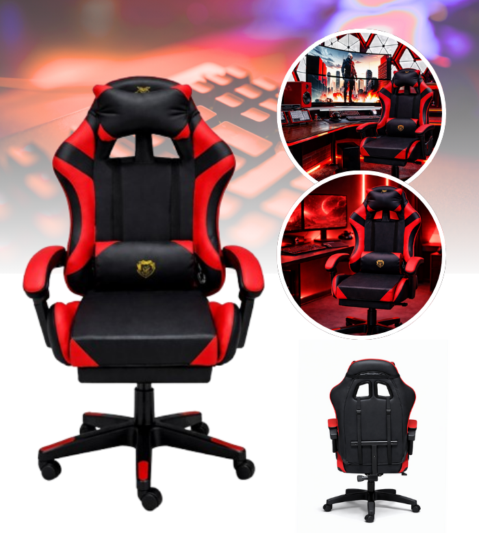 FOTEL GAMINGOWY CZARNO - CZERWONY DLA GRACZA REGULOWANA WYSOKOŚĆ MEBLE GAMINGOWE FOTEL Z PODNÓŻKIEM ERGONOMICZNY MEBLE DO BIURA, POKOJU DZIECIĘCEGO PREZENT DLA GRACZA