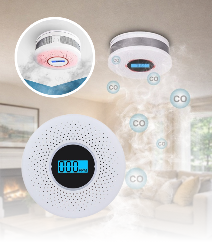 CZUJNIK DYMU I TLENKU WĘGLA ALARM CO CZADU CZUJNIK Z WYŚWIETLACZEM LCD BEZPRZEWODOWY DOM MIESZKANIE KUCHNIA GARAŻ KOTŁOWNIA BEZPIECZEŃSTWO