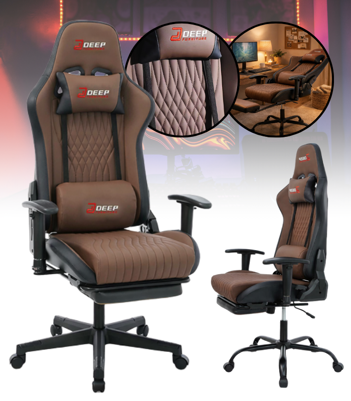 FOTEL GAMINGOWY BRĄZOWY DLA GRACZA REGULOWANA WYSOKOŚĆ MEBLE GAMINGOWE Z WYSUWANYM PODNÓŻKIEM WYGODNY ERGONOMICZNY MEBLE DO BIURA POKOJU DZIECIĘCEGO
