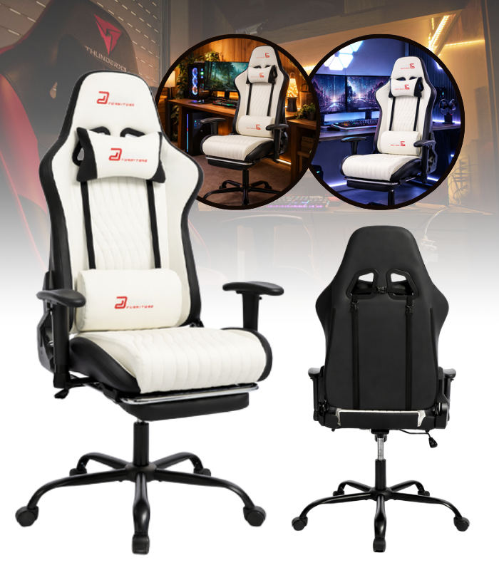FOTEL GAMINGOWY BIAŁY DLA GRACZA REGULOWANA WYSOKOŚĆ MEBLE GAMINGOWE Z WYSUWANYM PODNÓŻKIEM WYGODNY ERGONOMICZNY MEBLE DO BIURA POKOJU DZIECIĘCEGO