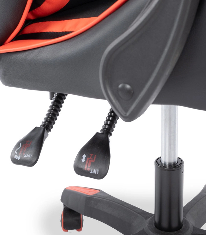 Regulowane oparcie fotela umożliwia idealne dopasowanie jego ustawienia do indywidualnych potrzeb — zarówno podczas grania, pracy, jak i relaksu przy komputerze. Odpowiednia pozycja siedząca ma kluczowe znaczenie dla zdrowia kręgosłupa i zapobiegania bólom pleców. Ruchome poduszki można łatwo dopasować do naturalnych krzywizn ciała, co dodatkowo zwiększa komfort użytkowania. Pod siedziskiem znajduje się dźwignia umożliwiająca blokadę wybranego ustawienia fotela, a po jej zwolnieniu siedzisko zyskuje funkcję kołyski, pozwalając na przyjemne bujanie i relaks.