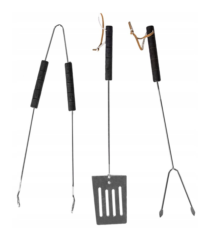 Akcesoria wykonane są z metalu chromowanego i posiadają drewniane uchwyty, co zapewnia komfort i bezpieczeństwo użytkowania.