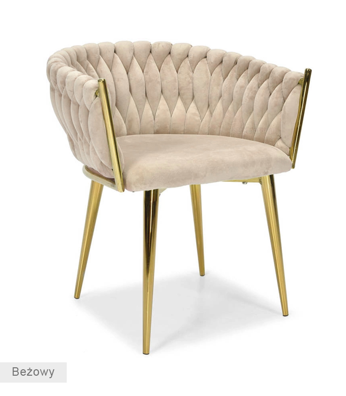 KRZESŁO WELUROWE ZŁOTE NOGI GLAMOUR FOTEL NOWOCZESNY TAPICEROWANY ELEGANCKI DUŻY PLECIONY DO JADALNI KUCHNI SALONU