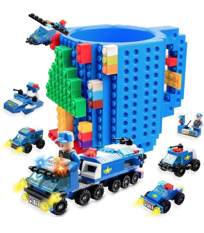 KUBEK KLOCKOWY 350ML NIEBIESKI KREATYWNY KUBEK DO BUDOWANIA KOMPATYBILNY Z LEGO ZIMNE CIEPŁE NAPOJE NA PREZENT DLA DZIECKA
