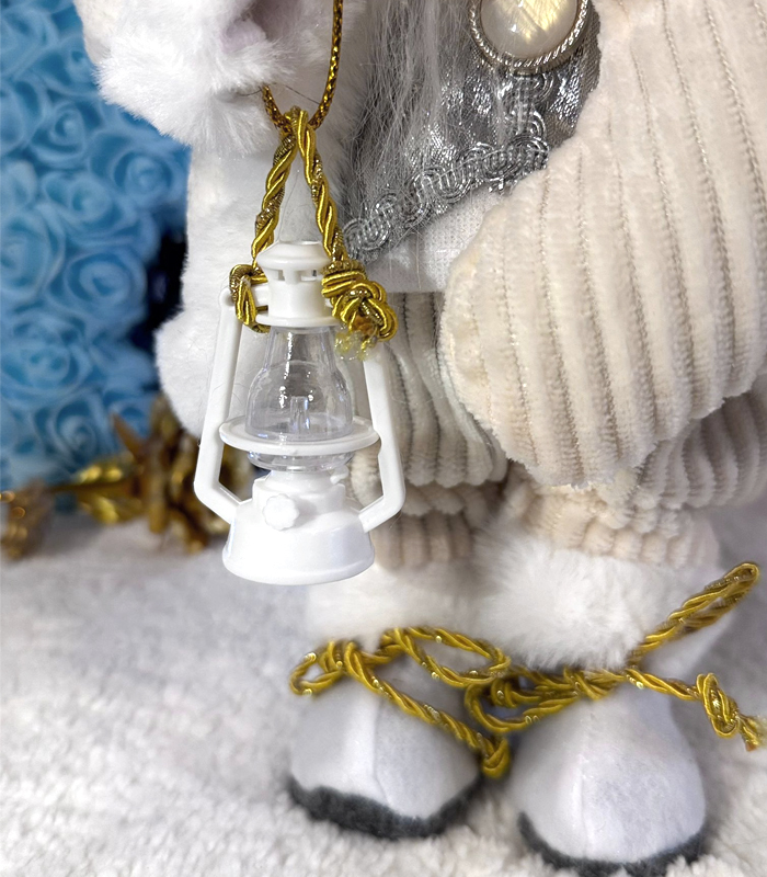 - Schowek na baterie znajduje się z tyłu, pod ubraniem Mikołaja – dyskretny i łatwo dostępny.