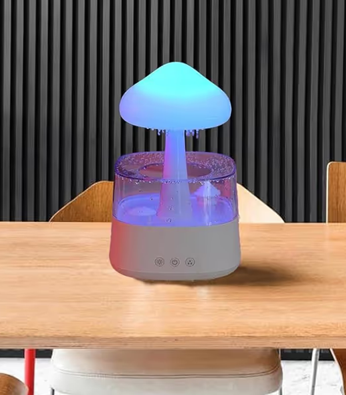 NAWILŻACZ POWIETRZA GRZYBEK DESZCZOWY ULTRADŹWIĘKOWY DYFUZOR LAMPKA NOCNA CHMURKA KROPLE DESZCZU LED 7 KOLORÓW DO AROMATERAPII USPOKAJAJĄCA
