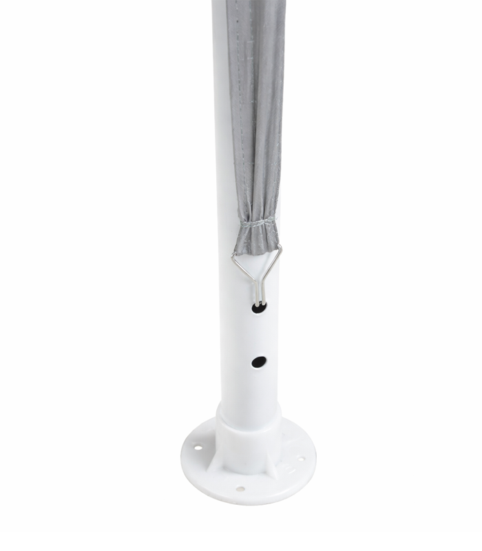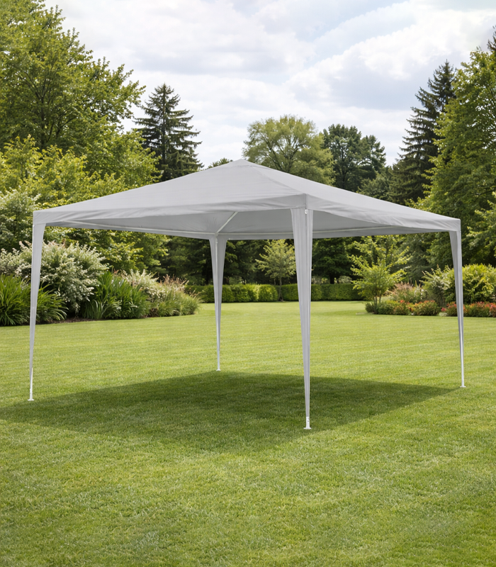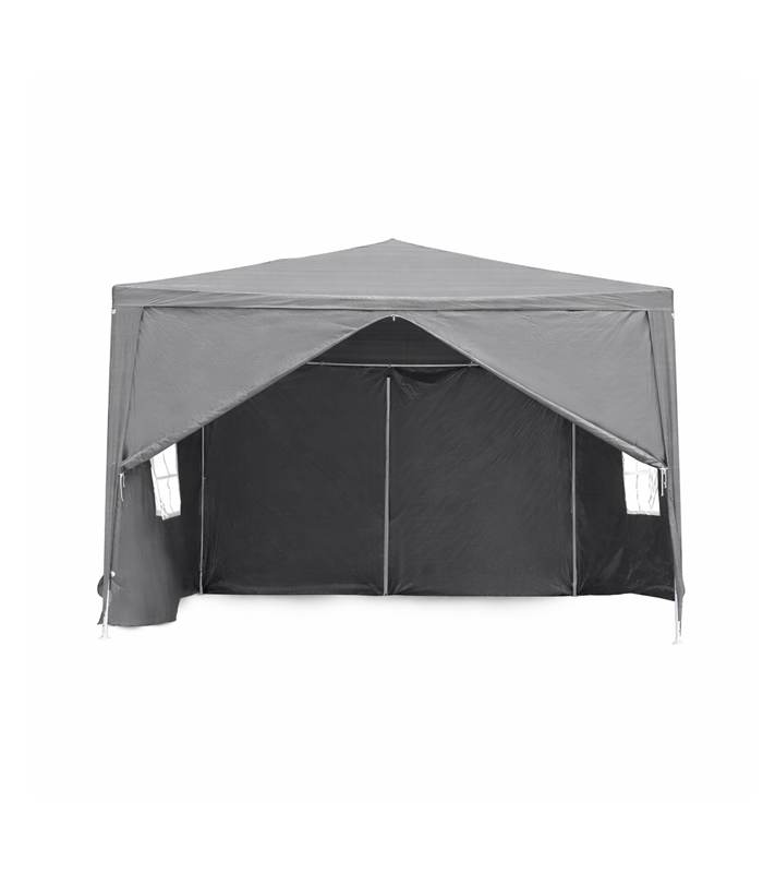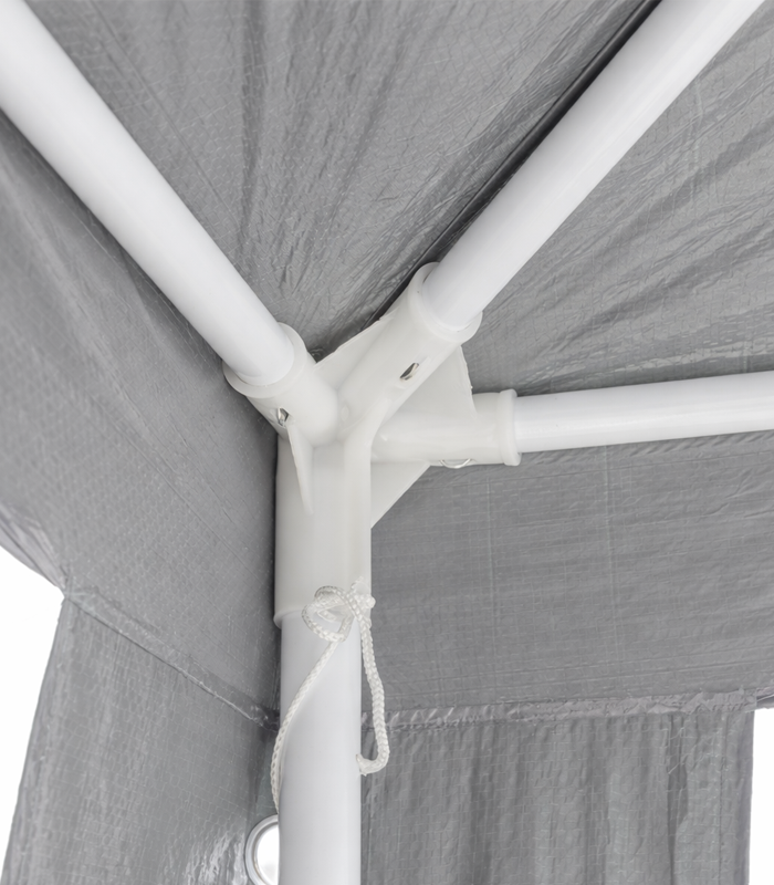 Stabilna konstrukcja wykonana z wytrzymałych rur stalowych gwarantuje solidność i długą żywotność. Cztery ściany boczne z oknami zapewniają dobre doświetlenie wnętrza, a wejście zamykane na zamek błyskawiczny zwiększa komfort użytkowania. Prosty i szybki montaż to dodatkowy atut pawilonu.
