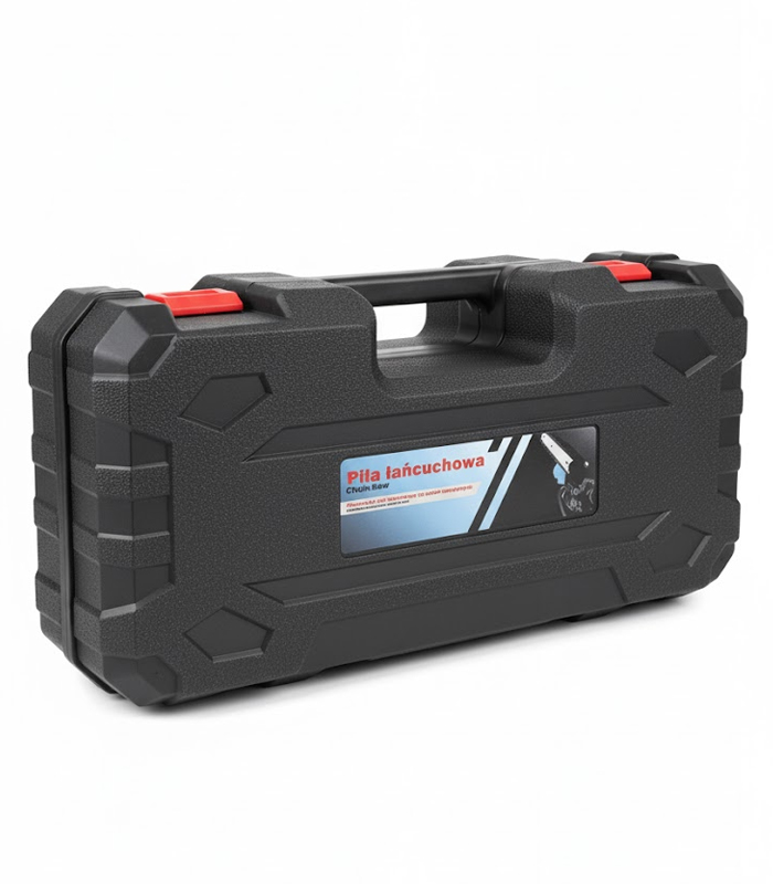 - zawartość skrzynki narzędziowej: 2 x łańcuch 6 cali (1 szt. w woreczku, 1 szt. na pile), ładowarka, okulary ochronne, piła, śrubokręt, klucz nasadowy
