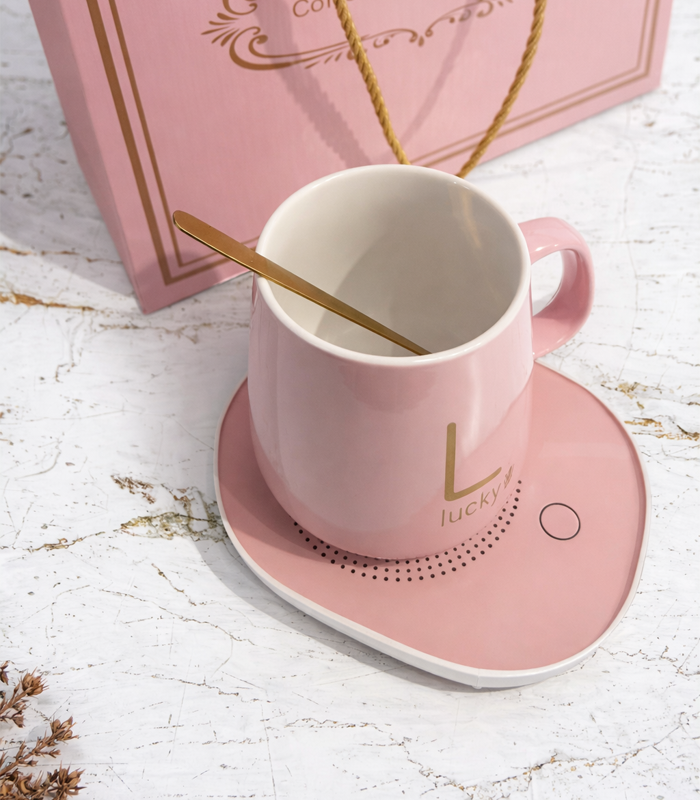 PODGRZEWACZ DO KUBKA ZESTAW CERAMICZY ZASILANY PREZENTOWY ŁYŻKA WIECZKO KUBEK DO HERBATY KAWY