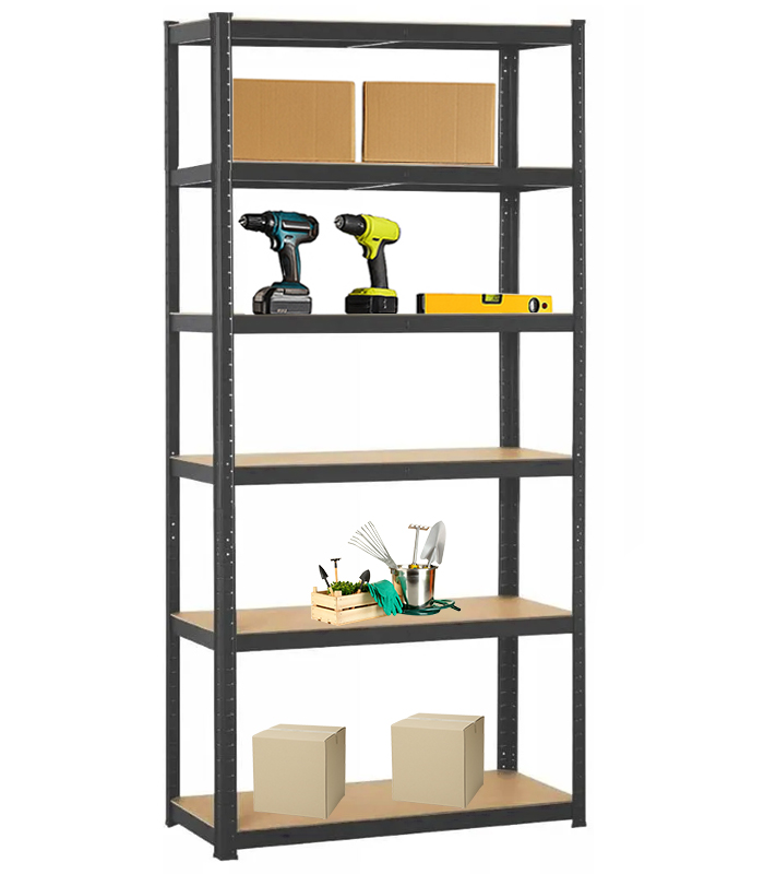 REGAŁ MAGAZYNOWY 220 CM SZARY METALOWY GARAŻOWY WARSZTATOWY 6 POZIOMÓW PŁYTA MDF DO PRZECHOWYWANIA DO MAGAZYNU GARAŻU PIWNICY Copy